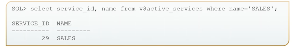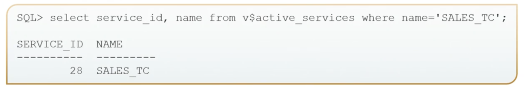 This is an example query with the possible output. So here we’re selecting, OK, what are the services I have? So here we can see that we have the SALES True Cache. We have the SALES service. And then we also– then on the TRUE_CACHE_SERVICE, we have the SALES True Cache.