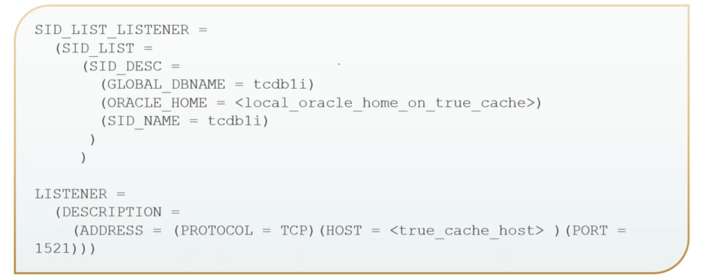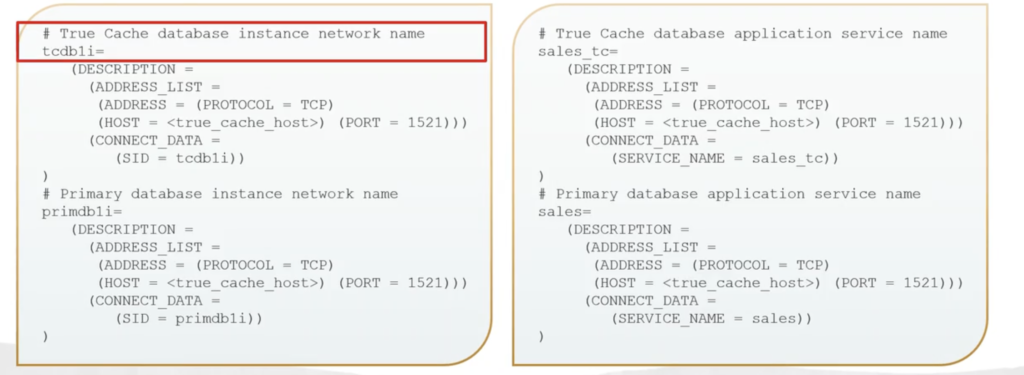 Then we can see there’s for our True Cache service, the sales tc, and then also an entry. There’s an entry for that primary database application service name, sales. So for our tnsnames, there’s a sample entry for our listener, for the primary and also for our True Cache instance.