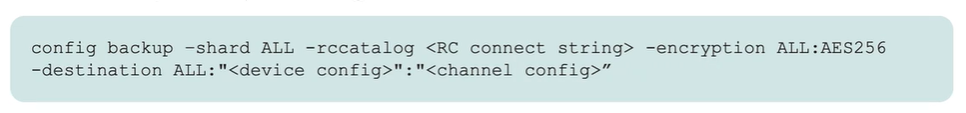 So when it comes to specifying, how do we identify and set up? Basically, we use the config backup, as shown on the previous slide. With that config backup, you can identify a specific shard, or you can do it for all of your shards. You can identify what recovery catalog, specify your connect string, the encryption associated with it, and the encryption algorithm.